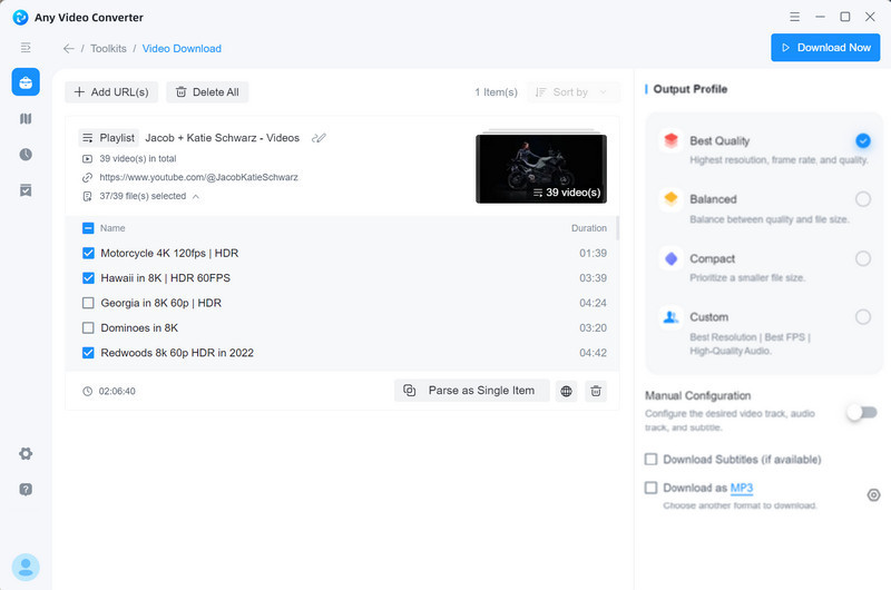 recommend If you want to download an entire playlist or whole channel, or select specific videos to download, Any Video Converter is your solid choice.